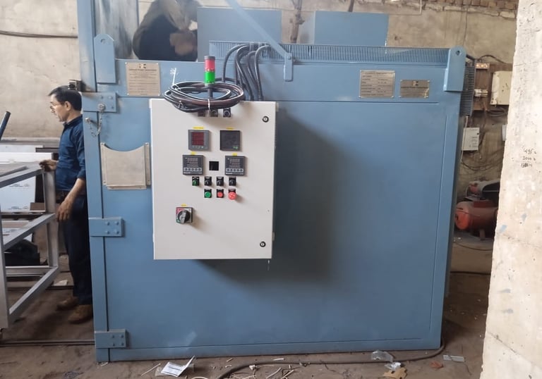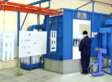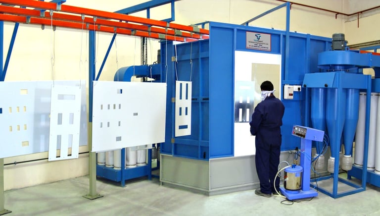 3. Powder Coating Division — Provide industrial-grade powder coating services with full process control including pre-treatment, ovens, curing, quality testing (salt spray, humidity, adhesion, and thickness testing). Highlight durable, environment-friendly finishes and precision quality.