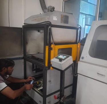 1. SPM & Automation Machines — Design, development, and manufacturing of Special Purpose Machines (SPM) and automated testing systems for industrial and railway sectors. Include products like flammability testing machines, pneumatic press machines, ovens, endurance testing machines, and custom fixtures. Mention expertise in PLC, SCADA, and LabView automation.